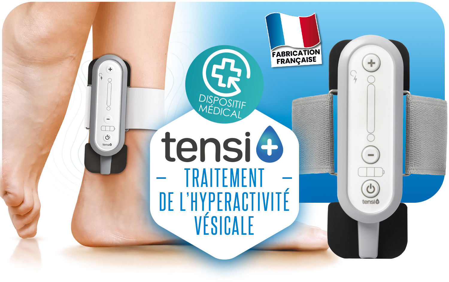 Tensi+ permet de traiter la vessie hyperactive d’origine idiopathique ou neurologique. Le dispositif médical tensi+ se porte 20 minutes par jour à la cheville. Les premiers effets sont visibles en 12 semaines. La vessie hyperactive peut être définie comme une urgence urinaire, généralement associée à la manifestation de l’un ou plusieurs des symptômes :